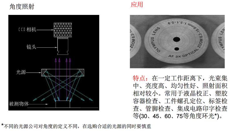 常用于液晶校正、塑膠容器檢查、工件螺孔定為、標(biāo)簽檢查、管教檢查、集成電路印字檢查等(30/45/60/75等角度環(huán)光)